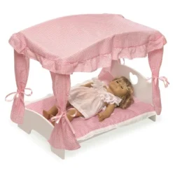 Badger Basket Doll Bunk Bed With Bedding, Ladder, And Free Personalization Kit – White/Pink/Gingham