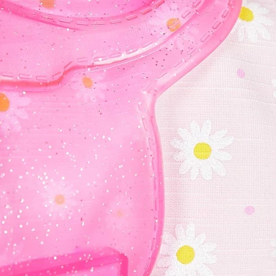Discover the brightest trails with 14″ Glitter Girls horse Bonnie! She has a beautiful white and tan coat with glittery pink hooves, a removable saddle, and saddle blanket decorated in cute floral prints. Her soft, shimmering pink mane and tail also features silver glitter tinsels that make styling extra fun! Care for Bonnie with the grooming brush, pretend spray bottle, and shampoo accessories. Then give her a delicious snack to keep her healthy on the trails as you explore dazzling adventures together with your equestrian Glitter Girls! (Dolls sold separately)