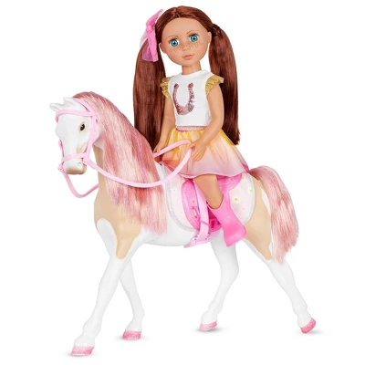 - Mix & Match: compatible with most 14-inch dolls, outfits, and accessories; Glitter Girls dolls can sit on Bonnie as they discover equestrian adventures together!