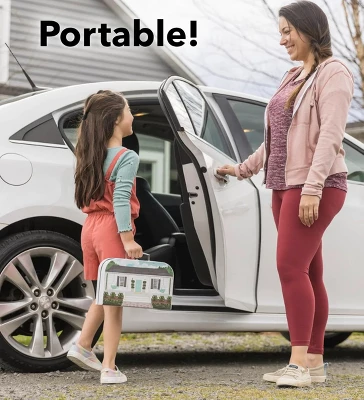 - Bring imaginative and pretend play to life with our super-cute portable dollhouse play set