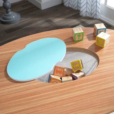 Giving kids a space to create on their own is essential in developing their independence. The KidKraft Mid-Century Kid Toddler Table & 2 Chair Set with EZ Kraft Assembly™ is the perfect size for them to explore creativity, while coordinating with your own personal design style.This fresh set includes rounded corners, natural-looking wood and pops of cool color to give a modern update to a classic furniture piece. The curved back chairs provide a comfortable spot for little bodies to sit. The oval table boasts a lift-up lid in the center to reveal a hanging net storage area. Kids can keep building blocks, crayons or small toys here for instant play. When finished, simply sweep everything back in for fast cleanup. With EZ Kraft Assembly™, set-up is a breeze. Provide hands-on activities for kids while using the Mid-Century Kid Toddler Table & 2 Chair Set as the designated base.