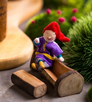 Our rustic Tree Block Furniture is made from the salvaged branches of clear-cut hazel and alder, each piece is lightly sanded and finished with nontoxic linseed oil. For ages 3 and up. Set includes 4-piece Bedroom Set: large bed, a small bed, a cradle and chest of drawers. Sizes range from 1″ to 4″