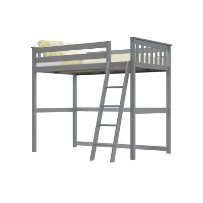 Get a chic sleeping space without sacrificing floor space with the Twin High Loft Bed from Max & Lily. Clean modern lines and neutral finishes give this bed a classic look that works with any decor or style. Tall, 14-inch guard rails provide ample sleep security. Angled ladder with anti-slip rounded steps provides easy and comfortable access to the loft. The ladder can be installed on the left or right side, so the bed can perfectly fit your space. The durable, low VOC finish is easy to maintain. Flush, color-matching hardware maintains the clean look. Solid New Zealand pine wood construction plus strong plywood slats and metal support bar provide a high 400-pound weight capacity. Accommodates standard twin-size mattresses and does not require a box spring or bunkie board. An 8-inch maximum mattress thickness provides the best fit. This bed meets or exceeds federal safety standards for children’s furniture. Instructions, slat roll, tools, and required hardware are included. 2+ adults make assembly easier. Bed ships in one box and is heavy due to solid wood construction. Mattress and bedding not included. With quality, style, and affordability, you will enjoy this twin high loft bed for years to come.