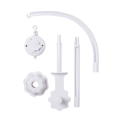 Encourage eye tracking and sound perception skills with this Sloth Round Musical Crib Mobile by Sammy and Lou. A solid light gray banded mobile ring features four playful sloths suspended from decorative white ribbons that slowly rotate to Brahms’ Lullaby. Mobile fits standard crib rail up to 2.75 inches and measures approximately 24 in tall by 20 in wide when fully assembled.